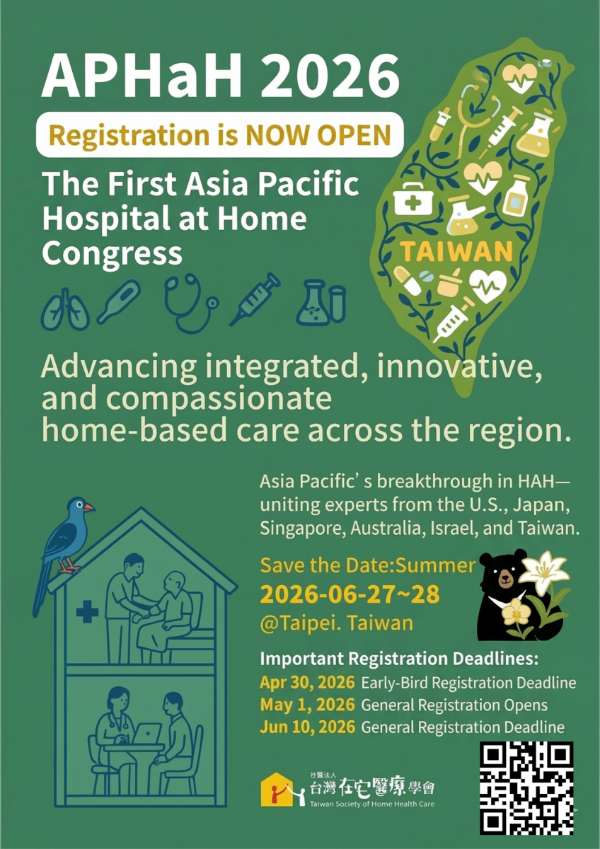 衛生局函轉知 台灣在宅醫療學會6月27日(六)~28日舉辦「第一屆亞太在宅急症照護國際研討會」,請踴躍參加