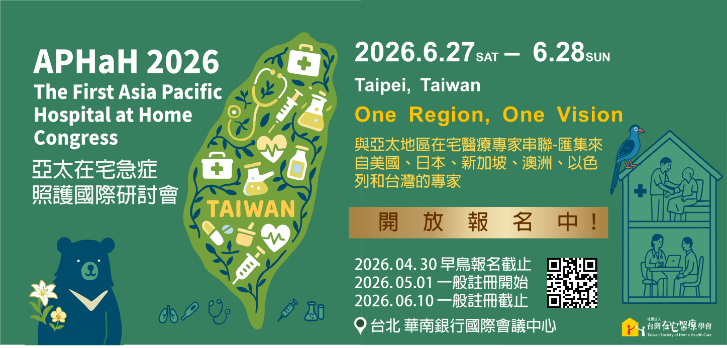 衛生局函轉知 台灣在宅醫療學會6月27日(六)~28日舉辦「第一屆亞太在宅急症照護國際研討會」,請踴躍參加